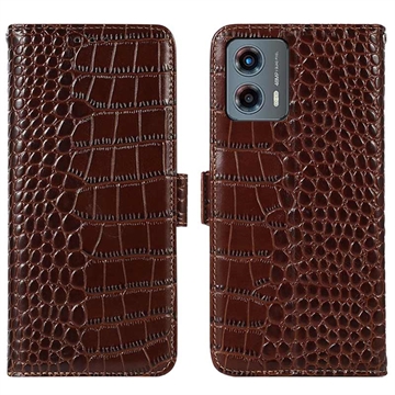 Motorola Moto G (2023) Crocodile Series Wallet Leather Case with RFID - Brown
