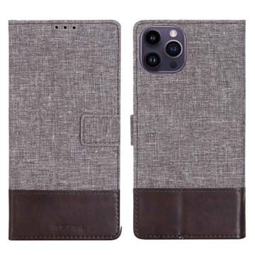 MUXMA MX102 for iPhone 14 Pro Canvas PU Leather Splicing Phone Case Wallet Stand Magnetic Clasp Cover