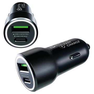 Prio Fast Charge Car Charger - USB-A 18W, USB-C 20W, QC3.0, PD3.0, Apple 2.4A, AFC, SCP, FCP, DCP This compact car charger by Prio is suitable for charging your smartphone, tablets, and earphones whenever you travel by car.