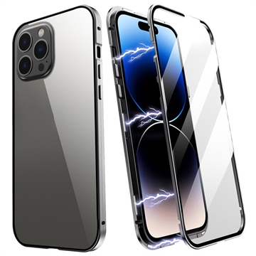 R-JUST Full Body Protection Phone Cover For iPhone 14 Pro Max, Solid Color Double-sided Tempered Glass + Aluminium Alloy Frame Ultra Clear Magnetic Phone Case