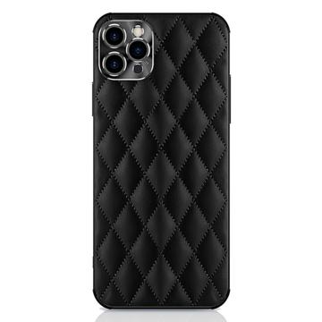 For iPhone 14 Pro Max Rhombus Texture Phone Case Raised Bezel Protection PU Leather+TPU Anti-dust Cell Phone Cover