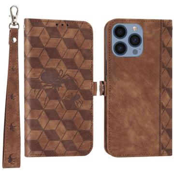 Cell Phone Cover for iPhone 14 Pro, PU Leather Imprinted Spider Rhombus Pattern Wallet Stand Anti-scratch Phone Case with Strap