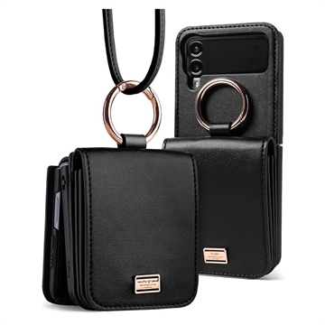 Ringke Folio Signature Leather Case with Strap for Samsung Galaxy Z Flip4 High-quality genuine leather case for Samsung Galaxy Z Flip4 by Ringke. Ringke Folio Signature case protects your Samsung Galaxy Z Flip4 from drops, scratches, dust, and daily damage. The cover comes with a pocket that enables carrying your cards and cash with you, thinning your pockets. An integrated ring can be used with a strap to carry your Galaxy Z Flip4 like a mini purse.