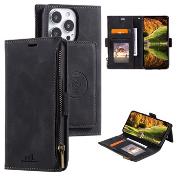 Saii Zipper iPhone 13 Pro Wallet Case with Strap - Black