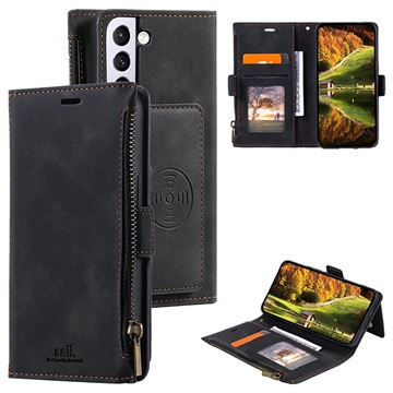 Saii Zipper Samsung Galaxy S22+ 5G Wallet Case with Strap - Black