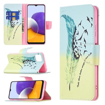 Samsung Galaxy A22 5G, Galaxy F42 5G Wonder Series Wallet Case - Feathers