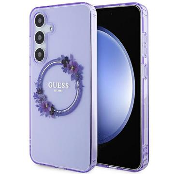 Samsung Galaxy S24+ Guess IML Flowers Wreath Case - MagSafe Compatible - Purple