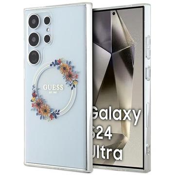 Samsung Galaxy S24 Ultra Guess IML Flowers Wreath Case - MagSafe Compatible - Transparent
