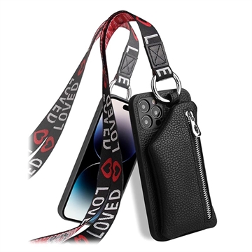 Strap Series iPhone 14 Pro Max Case with Detachable Wallet - Black