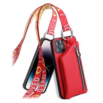 Strap Series iPhone 14 Pro Max Case with Detachable Wallet - Red