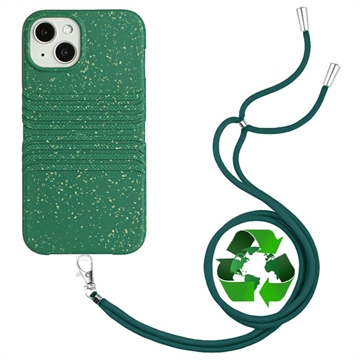 For iPhone 14 Wheat Straw Soft TPU Shockproof Protective Phone Case Fully Biodegradable Zero Waste Back Cover with Long Strap