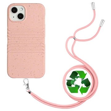 For iPhone 14 Wheat Straw Soft TPU Shockproof Protective Phone Case Fully Biodegradable Zero Waste Back Cover with Long Strap
