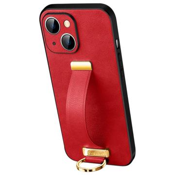 SULADA Fashion Series for iPhone 14 Kickstand Crazy Horse Texture Phone Case PU Leather Coated PC + TPU Cover with Retractable Wristband